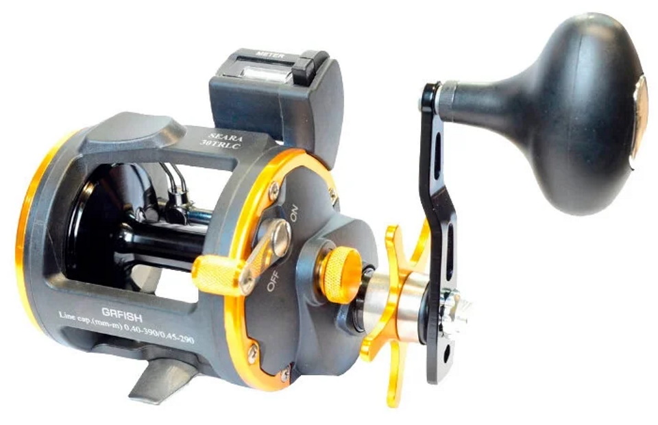 بڑی مچھلیوں کو پکڑنے کے لیے ملکیتی بریک سسٹم کے ساتھ طاقتور ماڈل۔ جاری کردہ لائن کی مقدار بلٹ ان کاؤنٹر کے ذریعہ طے کی جاتی ہے۔ اس کے علاوہ، سپول پر خصوصی حلقے باقی لائن کا تعین کرنے میں مدد کرتے ہیں. کافی لمبے ہینڈل کے بڑے اشارے سے ایک مضبوط گرفت فراہم کی جاتی ہے۔