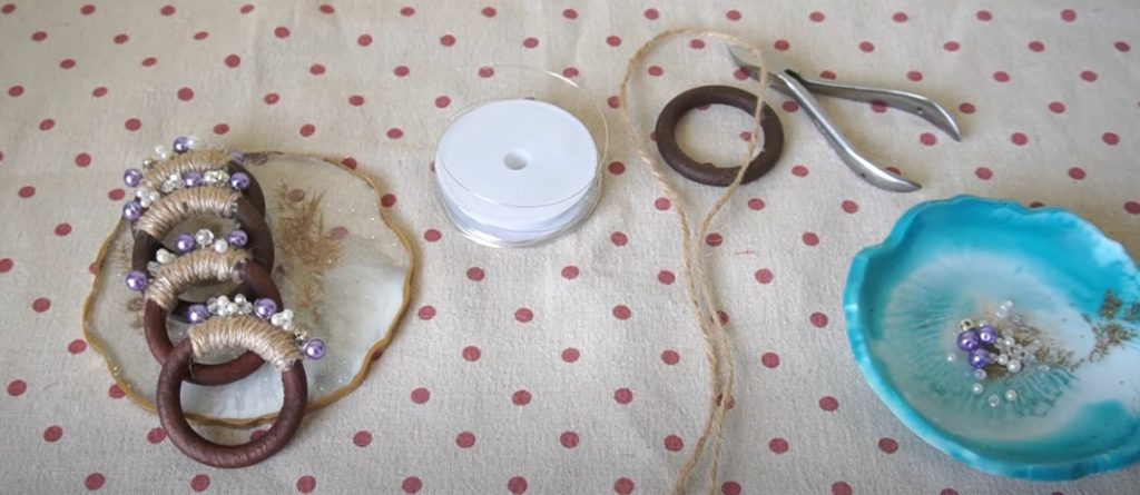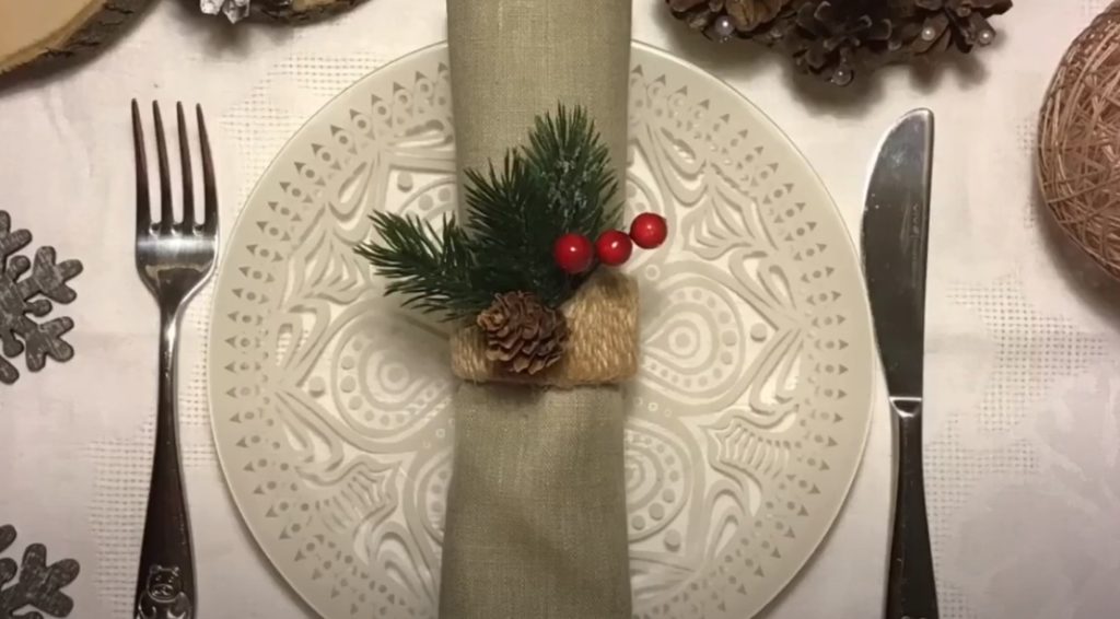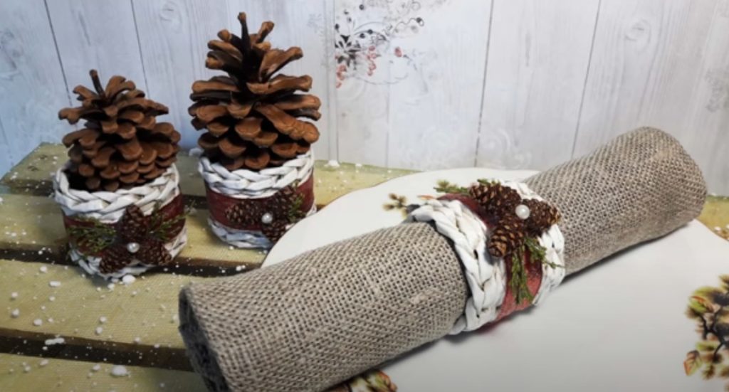 خیال یہ ہے کہ استعمال شدہ پیکیجنگ فلم سے بچ جانے والی موٹی گتے یا پلاسٹک کی ٹیوبیں استعمال کریں۔ اس طرح کی بنیاد کو مساوی اونچائی کے حلقوں میں آرا کیا جاتا ہے اور ایک مستقل فٹ کے ساتھ جوٹ سے صاف طور پر لپیٹا جاتا ہے۔ پھر منتخب تھیم کا ایک سادہ نمونہ گلو گن سے لگایا جاتا ہے اور خشک ہونے کے بعد اسے دھاتی تامچینی سے ڈھانپ دیا جاتا ہے۔ یہ اختیار کرسمس اور ایسٹر کی دعوتوں کے لیے موزوں ہے، موم بتیوں، فر شاخوں، چاندی اور سونے کے نمونوں کے ساتھ کامل ہم آہنگی میں۔