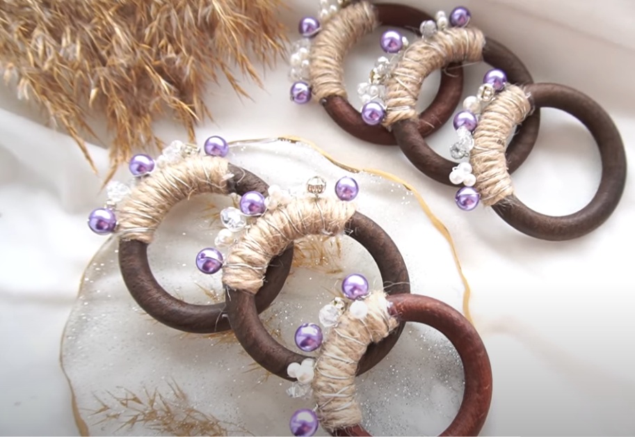 لکڑی کے حلقے ماحول دوست اور قدرتی گرمجوشی کے حامل ہوتے ہیں۔ وہ گھر میں اور تقریبات میں یکساں طور پر کامیابی سے استعمال ہوتے ہیں۔ ایک معمولی رات کے کھانے کے لئے، یہ سجاوٹ رومانس لا سکتا ہے، خاص طور پر جب موم بتیوں کے ساتھ مل کر.