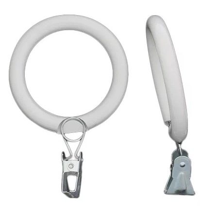 جدید پردے کی انگوٹھیوں میں فکسنگ کے لیے کپڑوں کا ایک آسان پن ہوتا ہے۔ سفید رنگ میں جاری کیے گئے ہیں۔