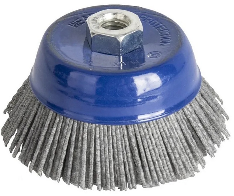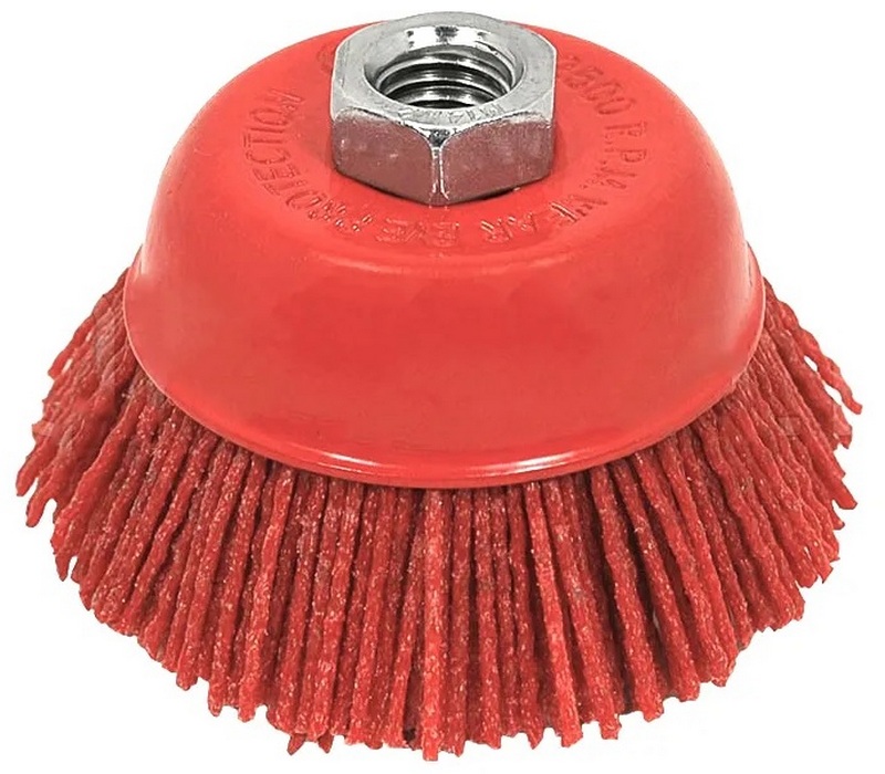 ماڈل نازک کام پر مرکوز ہے۔ کام کرنے والا حصہ نایلان سے بنا ہے۔ پیالے میں 75 ملی میٹر کے بیرونی قطر کے ساتھ M14 نٹ کے ذریعے محفوظ بندھن ہے۔برسل مواد کھرچنے والا نایلان ہے۔ M14 فکسنگ نٹ کی مدد سے (ایک کٹے ہوئے اندرونی دھاگے کے ساتھ)، برش کو اینگل گرائنڈر پر لگایا جاتا ہے۔ پرانے پینٹ، سنکنرن اور گندگی سے سطحوں کی صفائی کے لیے کام کرتا ہے۔ یہ لکڑی کی پروسیسنگ، ساخت کو برقرار رکھتے ہوئے ولی کو ہٹانے، دھاتوں کو باریک پیسنے کے لیے استعمال کیا جاتا ہے۔ خوردہ زنجیروں کے لئے تجویز کردہ قیمت 760 روبل ہے۔