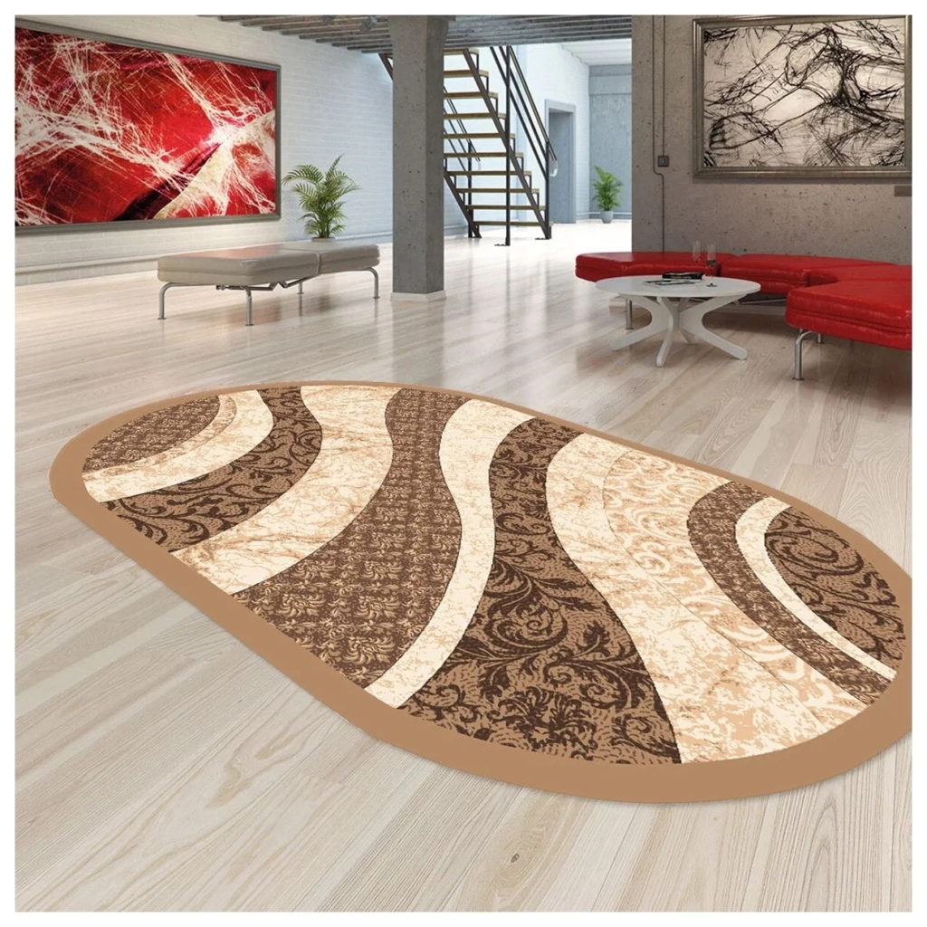 گھریلو پیداوار کا یہ قالین خوشگوار ڈیزائن، عملییت اور بجٹ کو یکجا کرتا ہے۔ اس میں بیضوی شکل اور ایک چھوٹا ڈھیر ہے۔ڈرائنگ ایک تجریدی انداز میں بنائی گئی ہے۔ مواد پیویسی اور پولیامائڈ. قیمت 504 روبل ہے۔