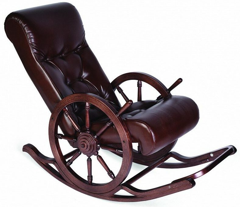 غیر معمولی ڈیزائن کے ساتھ ایک منفرد پروڈکٹ۔ غلط چمڑے کی upholstery جسم کے لئے خوشگوار ہے. سیٹ آسانی سے پیچھے سے گزرتی ہے، تاکہ جسم آرام دہ ہو۔ سجاوٹ پر خصوصی توجہ دی جانی چاہئے۔ جھولی کرسی کو دو اسٹیئرنگ وہیل سے سجایا گیا ہے، جو اطراف میں واقع ہیں۔ یہ آرائشی تفصیلات ہاتھوں کو سہارا دینے کے لیے بھی تیار کی گئی ہیں۔