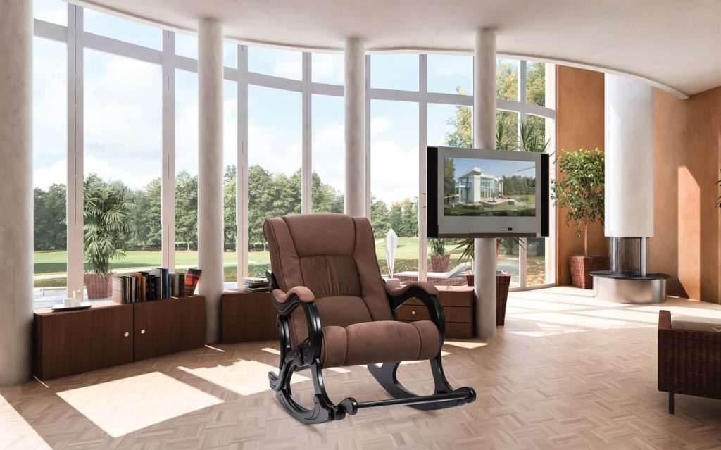 یہ ماڈل کمرے کے کسی بھی اندرونی حصے کے لیے استعمال کیا جا سکتا ہے۔ ظاہری طور پر، یہ لکڑی اور مصنوعی چمڑے سے بنا، ایک سجیلا نظر ہے. خاص طور پر توجہ armrests پر ادا کیا جانا چاہئے، جو ایک کپڑے پرنٹ کے ساتھ سجایا جاتا ہے. فوٹریسٹ کو فولڈ کیا جا سکتا ہے۔ یہ آسانی سے اور لمبے عرصے تک جھولتا ہے۔ کمر کو اس طرح بنایا گیا ہے کہ کمر اور گردن کے پٹھوں پر کوئی بوجھ نہ ہو۔