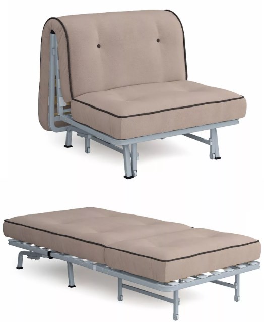 کرسی والا بستر ڈیزائن میں آسان ہے: ایکارڈین کی طرح جوڑ کر اسے ہٹانے کے قابل کور سے ڈھانپ دیا گیا تاکہ کوئی اضافی تفصیلات نہ دیکھ سکیں۔ ماڈل میں درج ذیل جہتیں ہیں: چوڑائی - 92 سینٹی میٹر، گہرائی - 100 سینٹی میٹر، اونچائی - 88 سینٹی میٹر۔