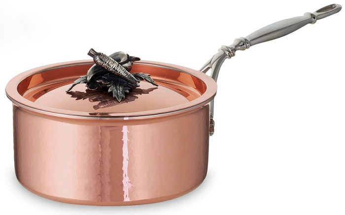 اطالوی مینوفیکچرر کا ماڈل، جس میں خوبصورت بناوٹ والی سطح ہے، جو ایمبوسنگ کی مدد سے بنائی گئی ہے۔ ہینڈل پیتل کا بنا ہوا ہے، ہاتھ سے تیار کردہ سجاوٹ سے سجا ہوا ہے جو مصنوعات کے ڈیزائن میں خوبصورتی کا اضافہ کرتا ہے۔ اندر ایک ٹن کی کوٹنگ ہے، جس کی بدولت کھانا آکسائڈائز نہیں ہوتا ہے۔ رفونی اوپس کپرا کو انڈکشن کے علاوہ کسی بھی قسم کے ہوب پر استعمال کیا جا سکتا ہے۔ لاڈل کھانا پکانے، سٹونگ، دوسرے کورسز پکانے کے لیے موزوں ہے: گرمی کو برتنوں کے اندر یکساں طور پر تقسیم کیا جاتا ہے، اجزاء کو گرم کرتے ہیں۔ قطر - 16 سینٹی میٹر اوسط قیمت ہے - 33,588 روبل۔