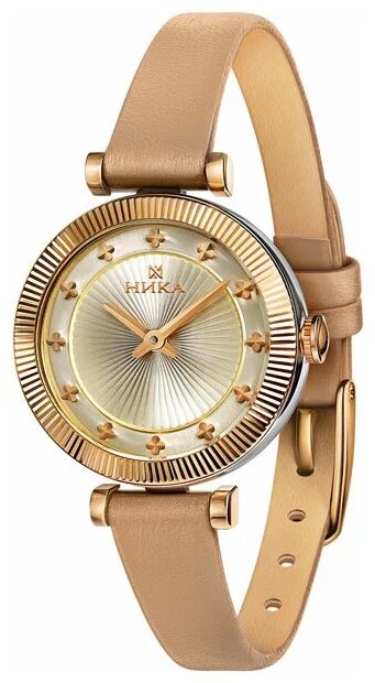 ایک اور ماڈل پر غور کریں، جو کہ اس کے پرتعیش ڈیزائن سے حیرت زدہ ہو جاتا ہے، اسے کال کرنے کا کوئی دوسرا طریقہ نہیں ہے۔ اس کا کیس سونے میں بنایا گیا ہے، اور ڈائل کے ساتھ پٹا سیاہ ہے۔ یہ ایک رنگ مجموعہ بناتا ہے جو اس طرح کے لوازمات کے پہننے والے کی حیثیت پر بالکل زور دیتا ہے۔ پٹا خود چمڑے کا بنا ہوا ہے، اور کیس پیتل کا بنا ہوا ہے، جو اسے استحکام دیتا ہے۔ مصنوعات کا گلاس معدنی ہے. یہ اسے خروںچ اور دیگر میکانی نقصان سے بالکل نمٹنے کی اجازت دیتا ہے۔ رومن ہندسوں کو اشارے کے لیے استعمال کیا جاتا ہے۔ اس طرح کی مصنوعات کی قیمت 1990 روبل ہے۔