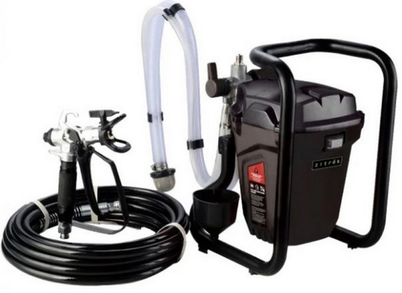 اس طرح کے آلات میں ایک خاص ڈایافرام پمپ ہوتا ہے اور یہ بنیادی طور پر کسی بھی سطح (کنکریٹ، اینٹ، لکڑی، دھات) کے علاج کے لیے زیادہ چپچپا یا مکمل طور پر مائع پینٹ کے ساتھ کام کرنے کے لیے استعمال ہوتے ہیں۔ان مشینوں کے پمپ کا ایک خاص ڈیزائن ہے: موٹر شافٹ کی گردش کا تعین کرتی ہے، جو ایک سنکی سے لیس ہوتی ہے، اور اس کے نتیجے میں، شافٹ کی گردشی حرکت پسٹن کی ترجمہی حرکت میں بدل جاتی ہے۔ پسٹن، بدلے میں، جھلی کو دھکیلتا ہے، جس سے پریشر چیمبر میں ایک نایاب ماحول پیدا ہوتا ہے، جس سے رنگ کھینچا جاتا ہے۔ مزید، پینٹ والو کے ذریعے سپرے گن کو کھلایا جاتا ہے، لیکن اگر اس پر موجود ٹرگر کو نہیں دبایا جاتا ہے، تو پینٹ جمع کرنے والے کنٹینر میں واپس آجاتا ہے۔