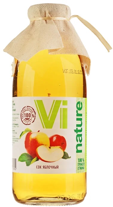 براہ راست دبانے سے تیار کیا جاتا ہے۔ سیب کا رس قدرتی طور پر میٹھا ذائقہ رکھتا ہے اور اس میں چینی شامل نہیں ہوتی ہے۔ مصنوعات hypoallergenic ہے اور 3 سال سے زیادہ عمر کے بچوں کے لیے موزوں ہے۔