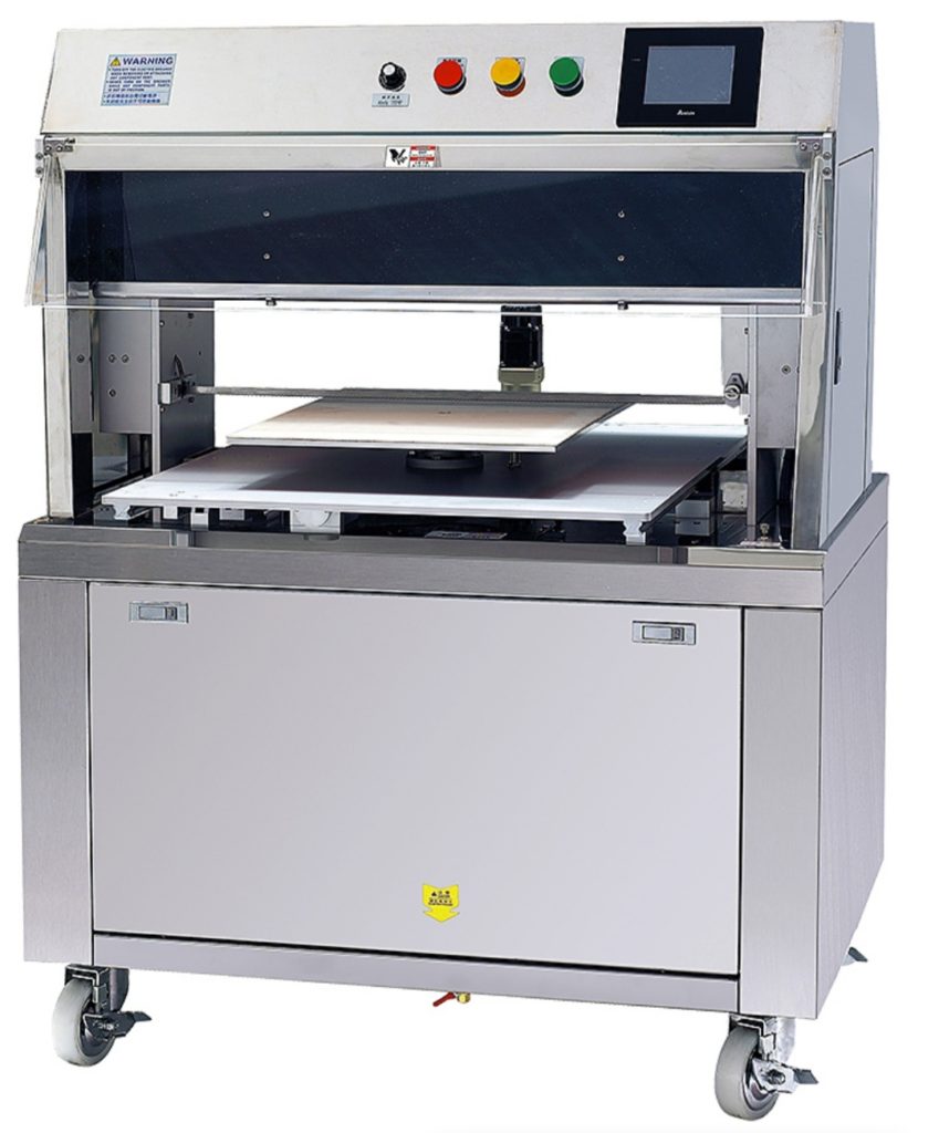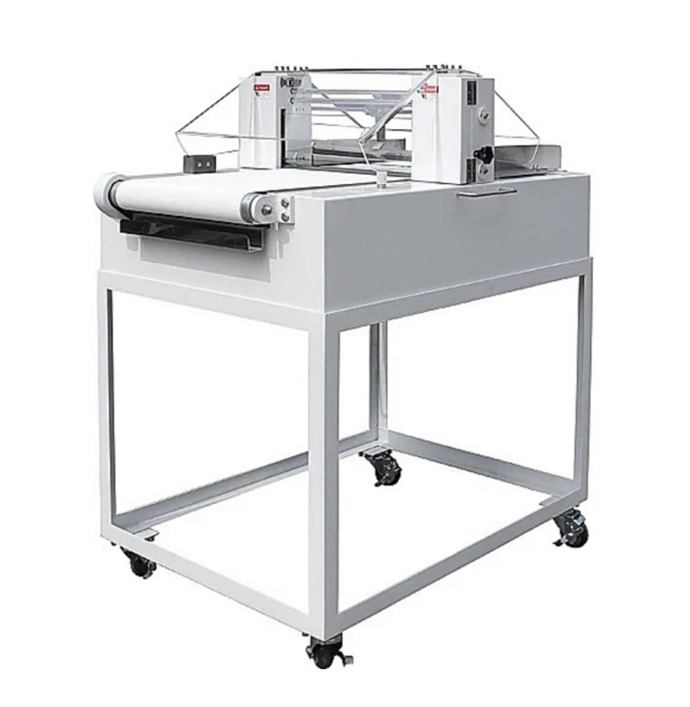 کومپیکٹ، ڈیسک ٹاپ مشین، 300 ملی میٹر چوڑی۔ چاقو اور کلیمپنگ میکانزم کی بدولت، یہ بسکٹ، ہیمبرگر بن وغیرہ کو تیزی سے کاٹ دیتا ہے۔ چلانے میں آسان، چاقو ہینڈ وہیل اور رولر کا استعمال کرتے ہوئے اونچائی کو ایڈجسٹ کیا جا سکتا ہے۔ ان لوڈنگ اور فیڈنگ کنویئر کو آسانی سے جدا اور جمع کیا جا سکتا ہے۔