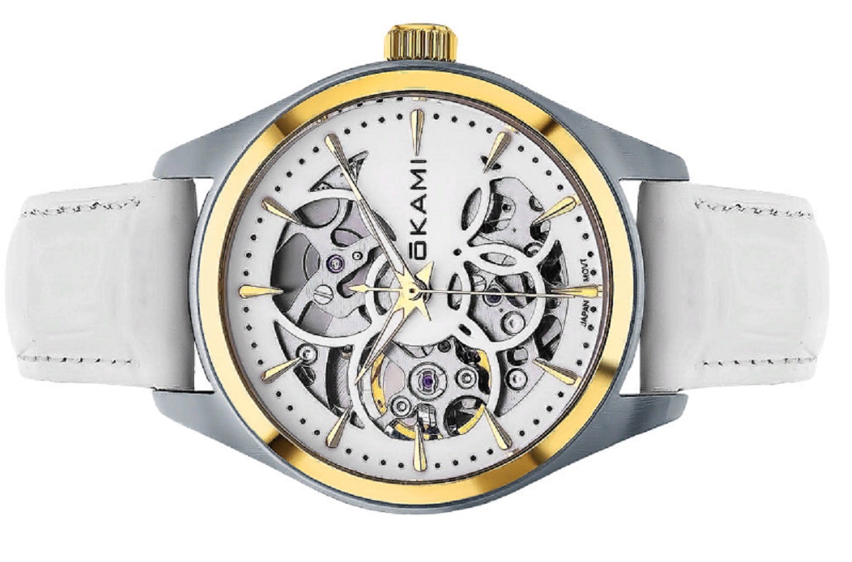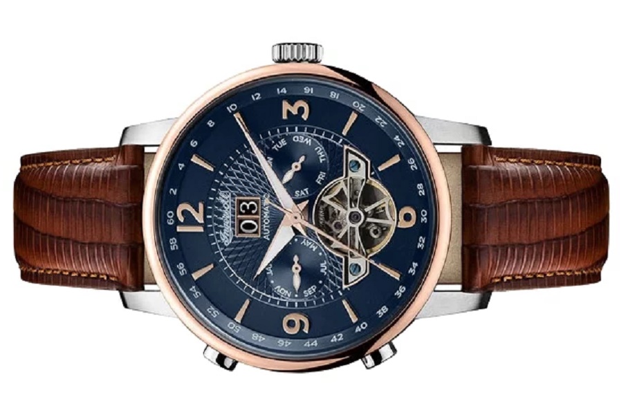 کنکال کی شکل میں اصل ماڈل کھیلوں اور کاروباری الماری کے لئے موزوں ہے. گول گولڈ چڑھایا ہوا کیس، کھلی حرکت، روشن ہاتھ، اور سفید چمڑے کا پٹا گھڑی کو کاروباری انداز فراہم کرتا ہے۔ میکانزم ایک فعال طرز زندگی کے لئے ڈیزائن کیا گیا ہے. واٹر ریزسٹنس کلاس آپ کو نہ صرف جاگنگ سے لطف اندوز ہونے کی اجازت دیتی ہے بلکہ اپنے واکرز کو اتارے بغیر واٹر اسپورٹس میں سرگرمی سے مشغول ہونے کی بھی اجازت دیتی ہے۔
