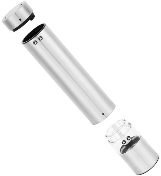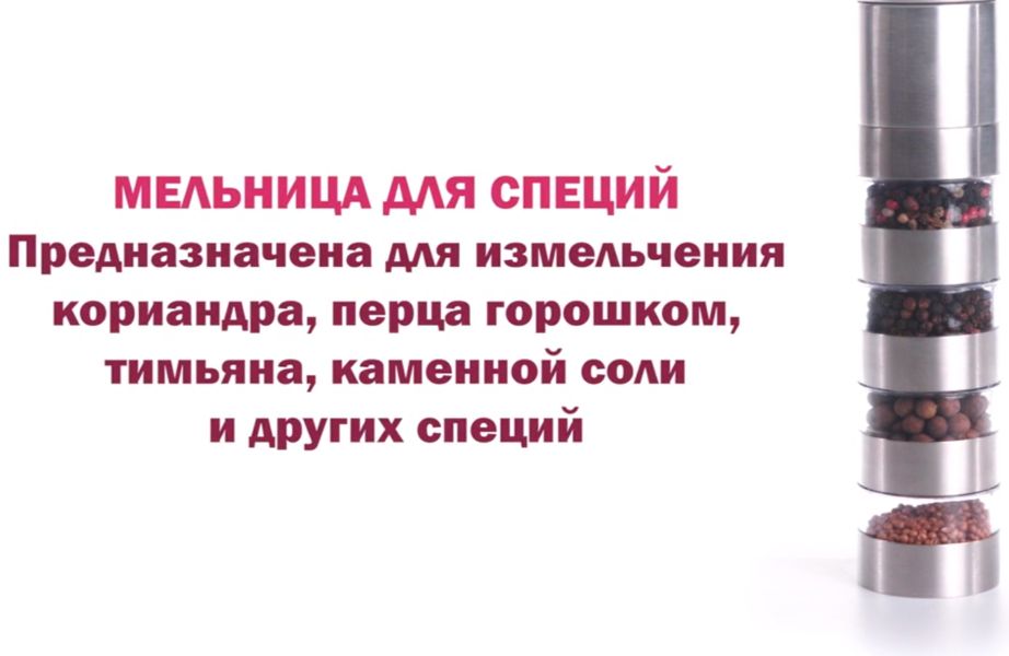 الیکٹرک مل کی باڈی قابل اعتماد اور مضبوط دھات سے بنی ہے، اور چکی کے پتھر سیرامکس سے بنے ہیں۔ آپ پیسنے کی ڈگری کا انتخاب کرسکتے ہیں۔ آپریشن کے دوران، پروڈکٹ بیک وقت مسالوں کو پیستا اور تقسیم کرتا ہے۔ یہ استعمال کرنا بہت آسان ہے، آپ کو تکنیک کو ڈش پر پکڑ کر بٹن دبانے کی ضرورت ہے۔ پروڈکٹ کی اونچائی - 18.2 سینٹی میٹر، چوڑائی - 3.3 سینٹی میٹر۔ بیٹری سے چلنے والی۔ اوسط قیمت 1,140 روبل ہے۔