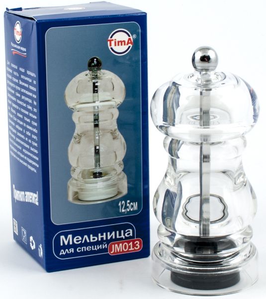 مکینیکل مل ایکریلک سے بنی ہے۔ شفاف کیس بہت خوبصورت لگتا ہے اور مواد کی مقدار کو کنٹرول کرنا بھی آسان بناتا ہے۔ آپ میکانزم کے عمل کا مشاہدہ کر سکتے ہیں، جو شفاف دیواروں کی غیر موجودگی میں کرنا بالکل ناممکن ہے۔ چکی کے پتھر سیرامک سے بنے ہیں، جو کسی بھی قسم کے خشک مصالحے کو پیسنے سے آسانی سے نمٹ سکتے ہیں۔ مسالوں کو پیسنے کی شدت کو جسم کے اوپری حصے میں سکرو کو اندر یا ڈھیلا کرکے کنٹرول کیا جاسکتا ہے۔ پیسنے کے لیے، چکی کے اوپری حصے کو گھڑی کی سمت موڑ دیں۔ اوسط قیمت 909 روبل ہے.