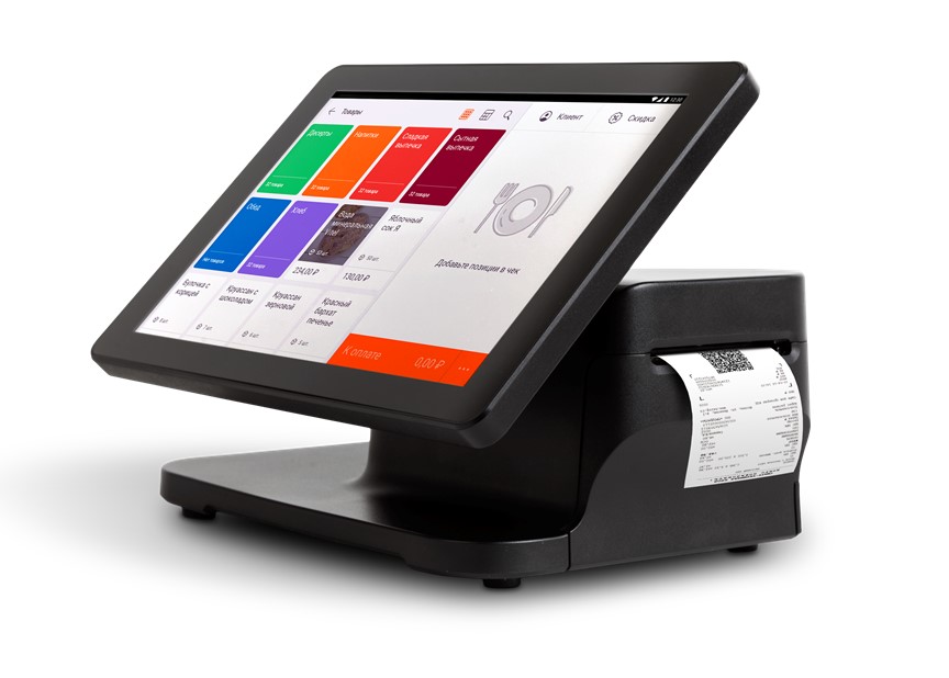 7 انچ کلر ڈسپلے، ٹچ کنٹرول۔ مزید برآں، آپ اسکیلز، ایک بارکوڈ سکینر، کارڈ کے ذریعے ادائیگی کے لیے ایک ٹرمینل انسٹال کر سکتے ہیں۔ انٹرنیٹ کنکشن Wi-Fi یا موبائل انٹرنیٹ کے ذریعے ہے۔
