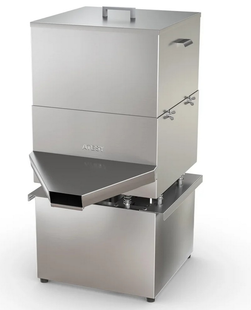 ماڈل میں بلٹ میں مقناطیسی علیحدگی کا نظام موجود ہے۔ گریٹنگ مقناطیسی سٹیل سے بنی ہے، جس کا سائز 1.2 x 1.2 ملی میٹر ہے۔ ایک اعلی تعدد الیکٹرو مکینیکل دولن جنریٹر کو پروڈکٹ پر کارروائی کرنے کے لیے استعمال کیا جاتا ہے۔ زیادہ سے زیادہ بوجھ پر ATESY جھرن کی گنجائش 150 کلوگرام فی گھنٹہ ہے۔ مصنوعات کی ایک بار لوڈنگ - 5 کلو تک۔