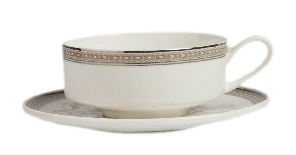 کپ خود ہینڈل کے ساتھ ایک گول پیالہ ہے۔ حجم 200-250 ملی لیٹر ہے۔ طشتری کو بنیادی طور پر ریسس کیا جاتا ہے، جس سے آپ براہ راست اس سے گرم مشروب پی سکتے ہیں۔ چائے کے علاوہ ایسے برتن دیگر مائعات مثلاً چاکلیٹ، کوکو کے لیے بھی استعمال ہوتے ہیں۔