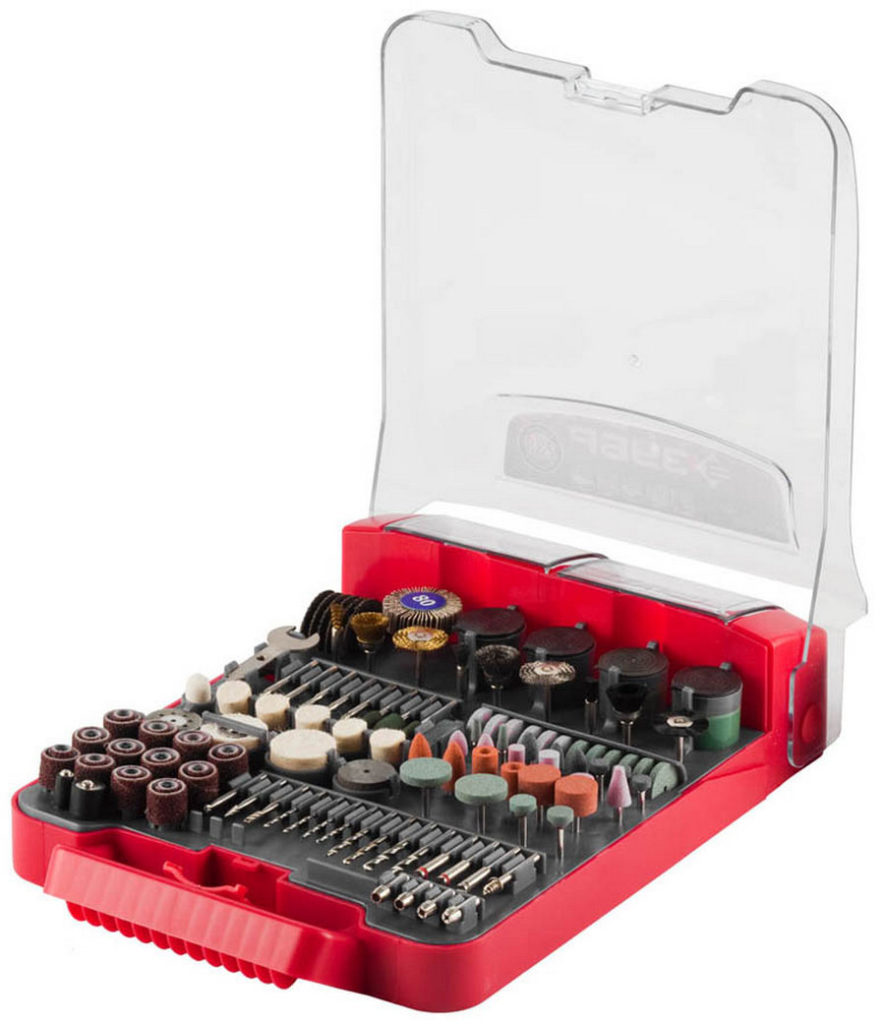 جدید آلات کے ساتھ یہ سیٹ خاص طور پر پیچیدہ ملازمتوں کی تیاری کے لیے ڈیزائن کیا گیا ہے۔ اس کے ساتھ، آپ اعلی صحت سے متعلق کاٹنے، دھات چمکانے، لکڑی اور پلاسٹک پیسنے کے میدان میں کام انجام دے سکتے ہیں۔ نقل و حمل کے لئے، ایک آسان کیس استعمال کیا جاتا ہے.