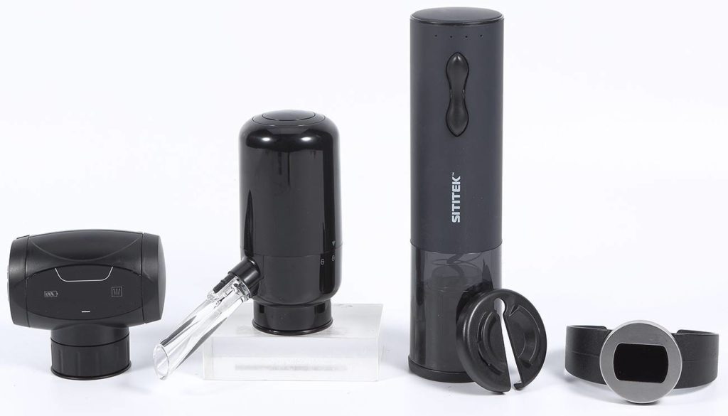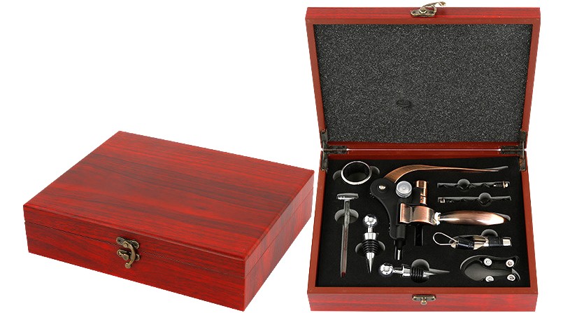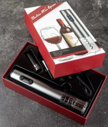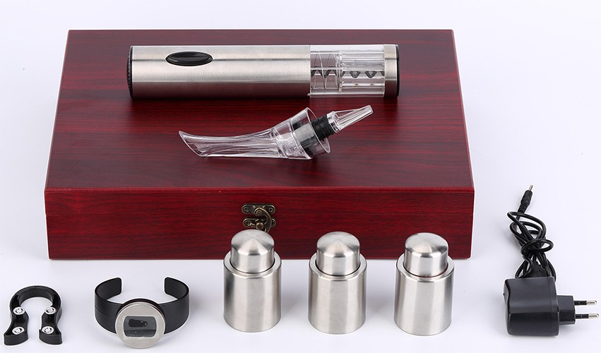 لکڑی کے گفٹ باکس میں ہوا کو صاف کرنے اور شراب کی خوبصورت سرونگ کے لیے جدید الیکٹریکل لوازمات موجود ہیں۔ یہ آلہ ٹپنگ سینسر سے لیس ہے تاکہ شراب کو پھیلنے سے روکا جا سکے۔ جب شراب کی بوتل کو 45 ڈگری سے زیادہ جھکا دیا جاتا ہے، تو انخلاء کا عمل رک جاتا ہے، اور جب یہ عمودی پوزیشن پر واپس آجاتی ہے، تو یہ دوبارہ شروع ہو جاتی ہے۔سامان: الیکٹرک کارک سکرو، فوائل کٹر، پمپ ایریٹر، ایریٹر ٹیوب، الیکٹرانک ویکیوم اسٹاپپر، ڈیجیٹل تھرمامیٹر۔ لاگت: 8190 روبل۔