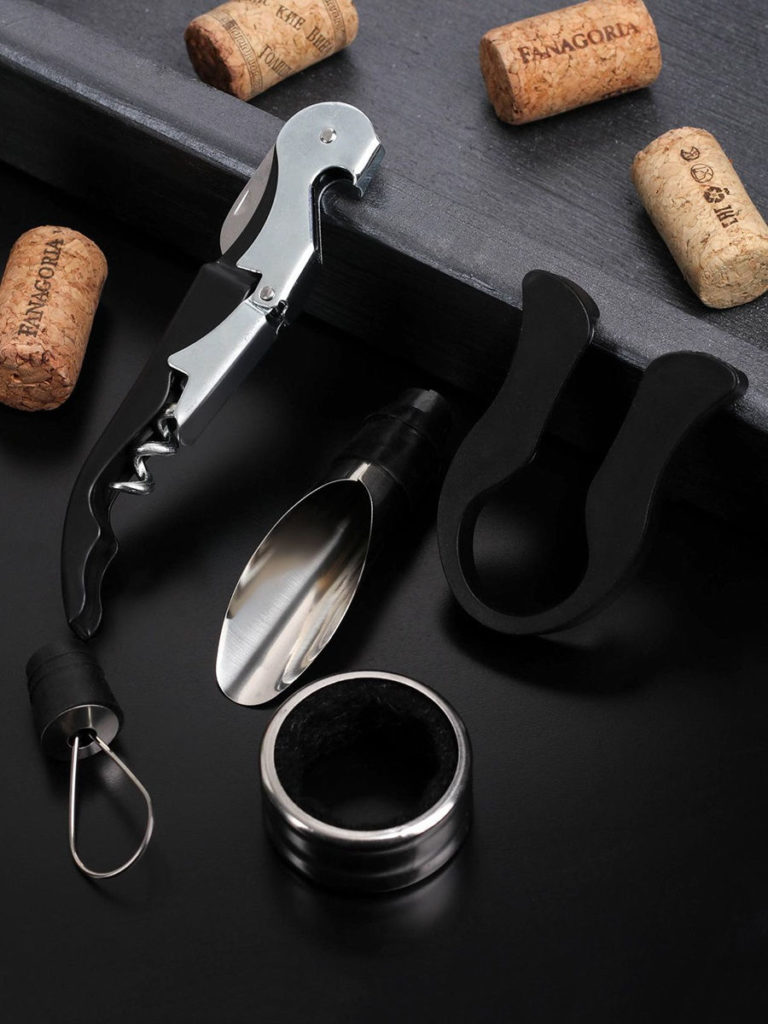 بنیادی پیکیج میں اکثر ایک کارک سکرو، ورق کی تہہ کو ہٹانے کے لیے ایک چاقو، ایک کارک، ایک ڈراپ کیچر شامل ہوتا ہے۔ اختیارات کے لحاظ سے اضافی لوازمات دستیاب ہو سکتے ہیں۔