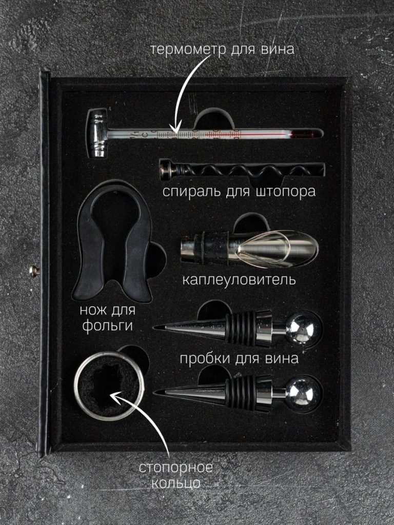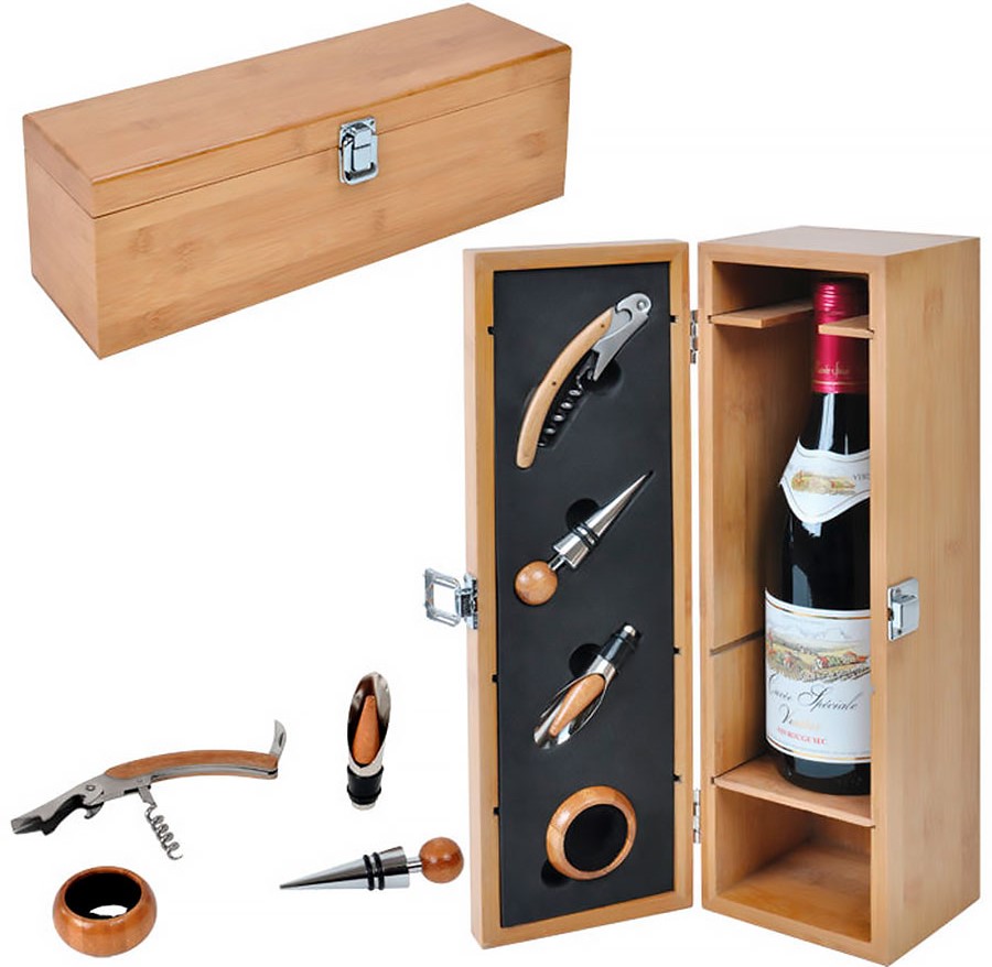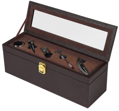 9 اشیاء کے ساتھ ایک خوبصورت لکڑی کا کیس اصلی سوملیئرز کے لیے بطور تحفہ موزوں ہے۔ مکمل سیٹ: نیم خودکار کارک سکرو، 2 نوزلز، 2 یونیورسل پلگ، ڈرپ کیچر، کالر، چاقو، تھرمامیٹر۔ مواد: سٹیل، پلاسٹک، سلیکون. اس صورت میں، ہر لوازمات اس کے اپنے سیل میں ہوتے ہیں، یہ آپ کو ہر لوازمات کو ہر ممکن حد تک آسانی سے استعمال کرنے کی اجازت دیتا ہے۔ اوسط قیمت: 2841 روبل۔