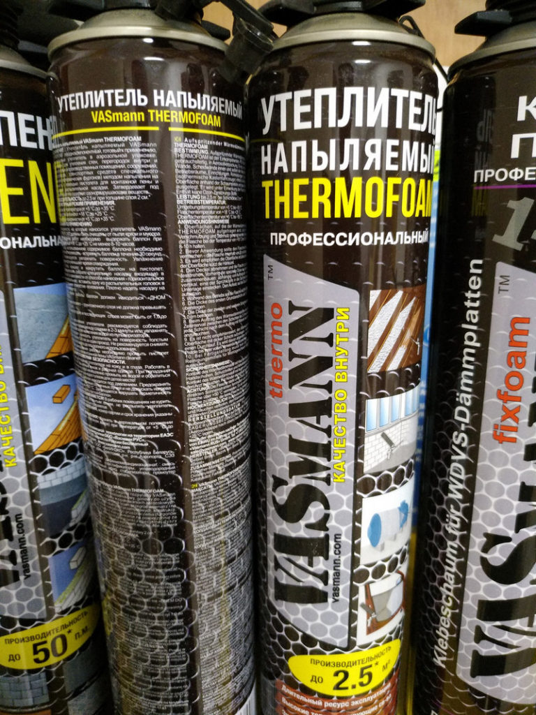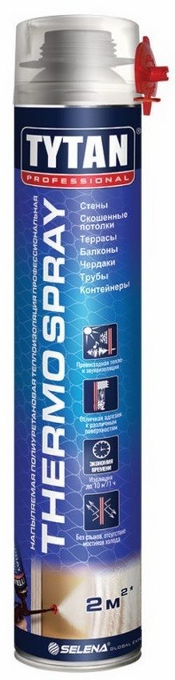 اسپرے کیا ہوا تھرمل انسولیٹر دراصل بڑھتے ہوئے فوم کا ایک اینالاگ ہے، جسے خاص آلات (خصوصی سلنڈر) سے اسپرے کرکے سطح پر لگایا جاتا ہے۔ اس طرح کا مادہ دو مائع مادوں پر مشتمل ہوتا ہے، جس کے اختلاط سے فوم مواد کی ایک بڑی مقدار بنتی ہے، جس کی مدد سے بعض جگہوں کو ڈھانپ لیا جاتا ہے۔