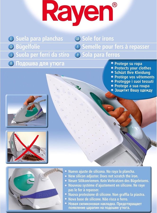 Rayen سلیکون ماڈل آفاقی ہے اور ہر قسم کی سٹیم استری مشینوں کے لیے موزوں ہے۔ سب سے پتلے اور نازک کپڑوں کو بھی محفوظ اور آسان استری فراہم کرتا ہے۔ اس کے استعمال سے جلنے، چکنائی والی چمک اور چیزوں پر داغ دھبے ختم ہو جائیں گے۔ اس کے علاوہ، ڈیزائن استری کرنے والے آلات کے واحد کو خروںچ اور دیگر نقصانات سے بچاتا ہے۔ پروڈکٹ کی میعاد ختم ہونے کی تاریخ نہیں ہے۔