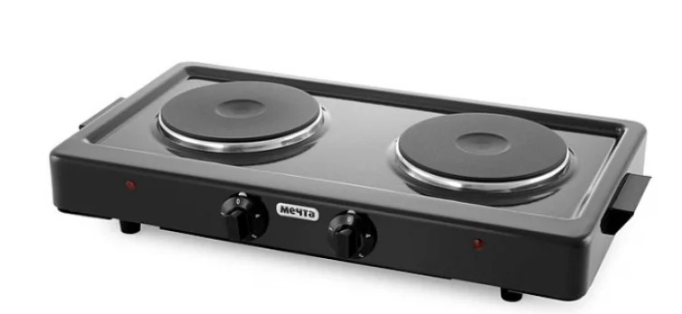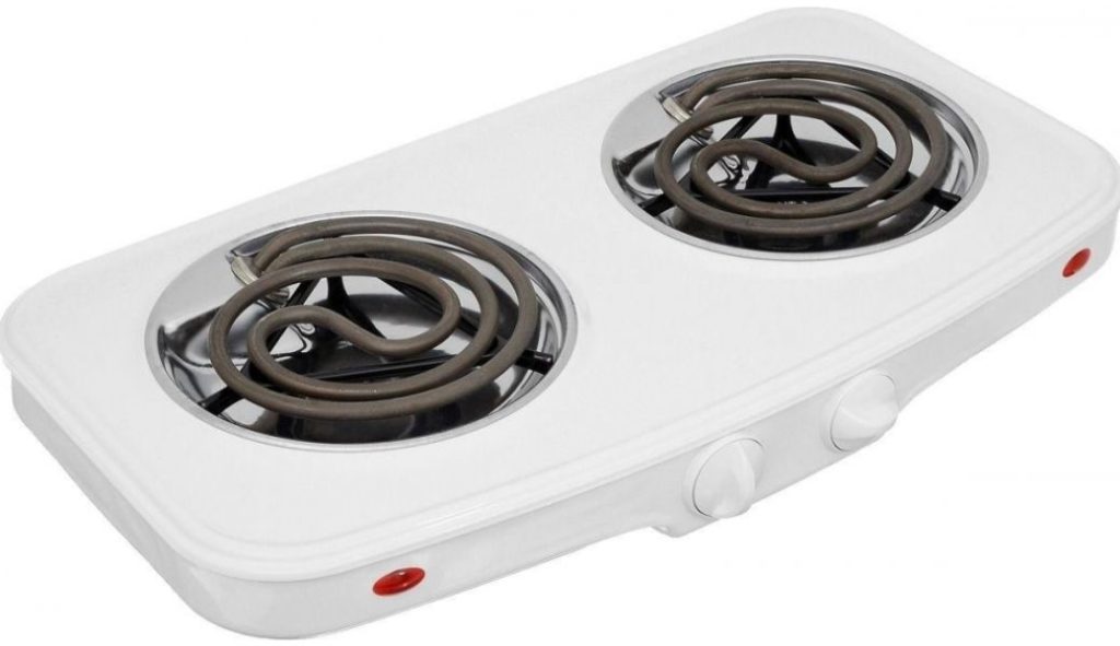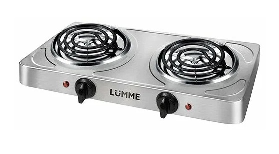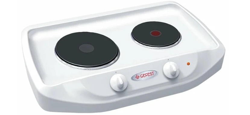 سفید میں ڈبل برنر چولہا۔ برنرز گول ہوتے ہیں، مختلف قطر کے، کاسٹ آئرن سے بنے ہوتے ہیں۔ ہر برنر کے بیچ میں ایک حرارتی اشارے ہوتا ہے۔ جب مراکز سرخ ہوتے ہیں تو پلیٹ کو چلایا جاسکتا ہے۔ کھانا پکانے کی ہر جگہ کو آن/آف کرنا الگ الگ کیا جاتا ہے۔