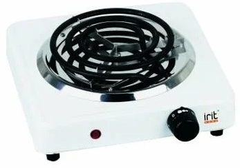 ایک جگہ کے لیے ٹیبل ٹاپ الیکٹرک چولہا مربع شکل۔ یہ ایک سرپل عنصر سے لیس ہے جہاں کھانا پکانے کے لیے باورچی خانے کے برتن رکھے جاتے ہیں۔ ایک آن/آف انڈیکیٹر ہے۔ کام کرنے والی سطح انامیلڈ اسٹیل سے بنی ہے۔ ڈیزائن پلاسٹک کی چھوٹی ٹانگوں سے لیس ہے۔
