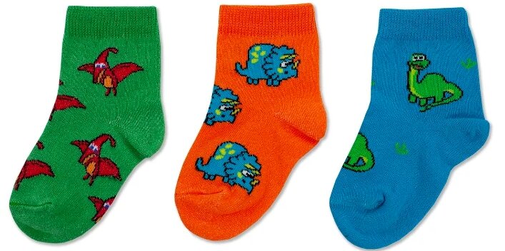 پیکنگ - مختلف رنگوں کی 3 مصنوعات (سبز، نارنجی، فیروزی)۔ ڈرائنگ مختلف ڈایناسوروں کی تصویر ہے۔ کلاسیکی شکل، درمیانی لمبائی، وسیع لچکدار بینڈ۔