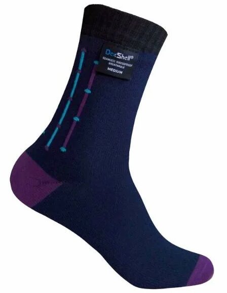 نیوی کلر پروڈکٹ - نیوی بلیو بیک گراؤنڈ، ارغوانی ہیل اور پیر۔ وسیع سیاہ بینڈ۔ متضاد نقطوں کے ساتھ دو عمودی دھاریاں (نیلے، جامنی) - پیچھے کی طرف۔ ٹخنوں کی لمبائی ہے۔