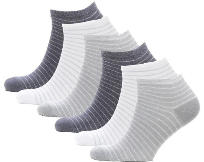 مکمل سیٹ - 6 جوڑے۔چھوٹا، پتلا لچکدار بینڈ، اچھی طرح سے کھینچیں۔ رنگنے - تین رنگ، 2 پی سیز. تین پس منظر: سفید، سرمئی، گہرا سرمئی۔ پیٹرن - پوری سطح پر پتلی دھاریاں۔