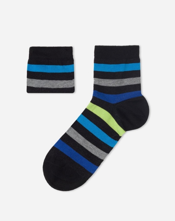 رنگ: رنگین دھاریوں کے ساتھ سیاہ، سرمئی میلانج دھاریاں، نیلی دھاریاں۔