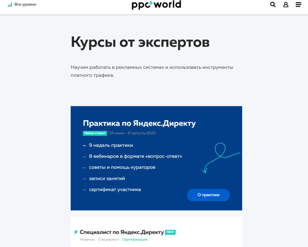 Ppc.world ایک تعلیمی پورٹل ہے جو ٹارگٹڈ اور سیاق و سباق کے اشتہارات کے ساتھ ساتھ ویب تجزیات کے لیے وقف ہے۔ انٹرنیٹ مارکیٹنگ کے شعبے میں ماہرین اور ماہرین کے مضامین اور مقدمات یہاں شائع کیے گئے ہیں۔ اس کے علاوہ، کمپنی بامعاوضہ ٹریفک کے ساتھ کام کرنے کے ساتھ ساتھ Yandex.Direct، Google Ads، VKontakte، اور SEO کی بنیادی باتوں پر مفت تربیتی کورسز کا انعقاد کرتی ہے۔ Ppc.world پلیٹ فارم سیاق و سباق سے متعلق اشتہارات کے بارے میں بہت ساری مفید معلومات پر مشتمل ہے، لہذا ماہر بننے کے لیے سائٹ پر پیش کیے گئے تمام مضامین کا بغور مطالعہ کرنا کافی ہے۔ مبتدی مفت کورسز سے مستفید ہوں گے۔