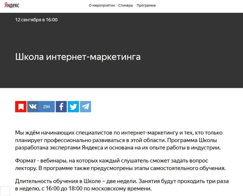Yandex کے ماہرین اور پریکٹیشنرز متعلقہ اشتہارات اور ڈیجیٹل مارکیٹنگ کے کورسز کا انعقاد کرتے ہیں، جہاں پیشہ ور افراد اپنے تجربے کا اشتراک کرتے ہیں۔ کورس مکمل کرنے کے بعد تمام لیکچرز کی ویڈیو ریکارڈنگ دستیاب ہیں، وہ آفیشل ویب سائٹ پر دیکھی جا سکتی ہیں۔