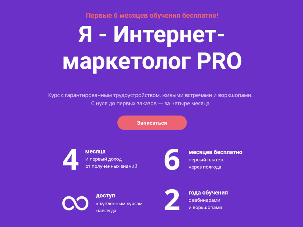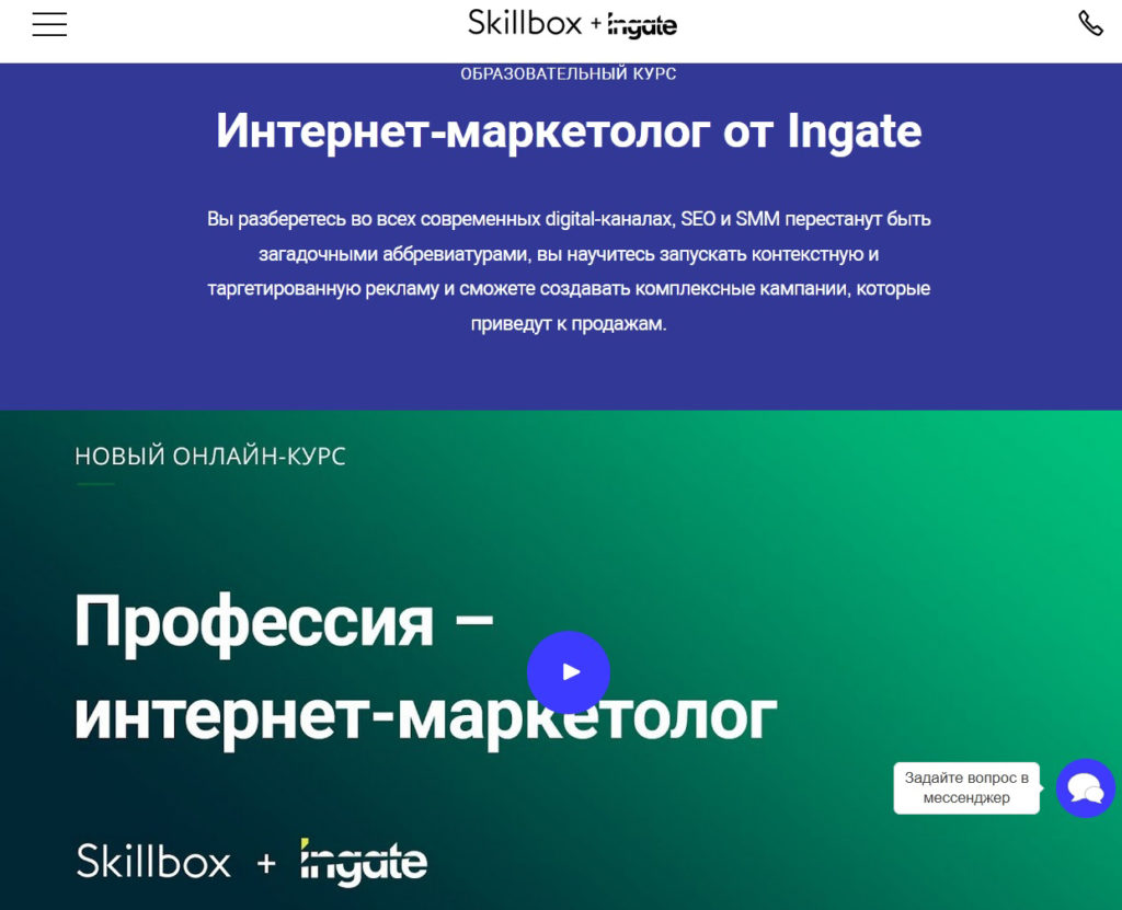 یہ Skillbox پلیٹ فارم پر معروف ڈیجیٹل ایجنسی Ingate کی طرف سے فراہم کیا گیا ہے اور یہ ان لوگوں کے لیے ڈیزائن کیا گیا ہے جو اپنی تعلیم مکمل کرنے کے بعد، کلاسز کا اہتمام کرنے والی کمپنی سمیت کسی اعلیٰ کمپنی میں نوکری لینا چاہتے ہیں۔ Ingate سب سے بڑی روسی ڈیجیٹل ایجنسیوں میں سے ایک ہے۔ Ingate تعلیمی کتابیں، آن لائن اشاعتیں شائع کرتا ہے، فاصلاتی تعلیم کا اہتمام کرتا ہے، نئی پیشہ ورانہ مہارتیں سیکھنے اور تیار کرنے کا موقع فراہم کرتا ہے۔ ٹریننگ کا دورانیہ دو ماہ ہے، تاہم اس کی فراوانی کے لحاظ سے، لیکچرز کسی بھی طرح سے زیادہ سے کم نہیں ہیں۔