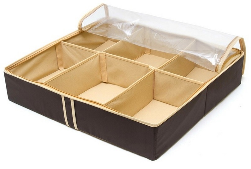 ٹیکسٹائل شو کیس ایک باکس ہے جسے ہٹنے یا اسٹیشنری داخل کرنے کے ذریعہ کئی حصوں میں تقسیم کیا جاتا ہے اور اسے 4.6 یا 12 جوتوں کے جوڑوں کے لیے ڈیزائن کیا جا سکتا ہے۔ابتدائی طور پر، اس قسم کے آرگنائزر کو گتے کے خانے کے منتظمین کے متبادل کے طور پر تصور کیا گیا تھا، جو بظاہر آسان لگتا تھا، لیکن زیادہ مضبوط اور زیادہ بھاری نہیں تھا۔ اور طول و عرض کا مسئلہ خاص طور پر محدود استعمال کے قابل جگہ والے چھوٹے اپارٹمنٹس کے لیے متعلقہ ہے۔ عام طور پر، ٹرنک آرگنائزر کے فوائد میں شامل ہیں: