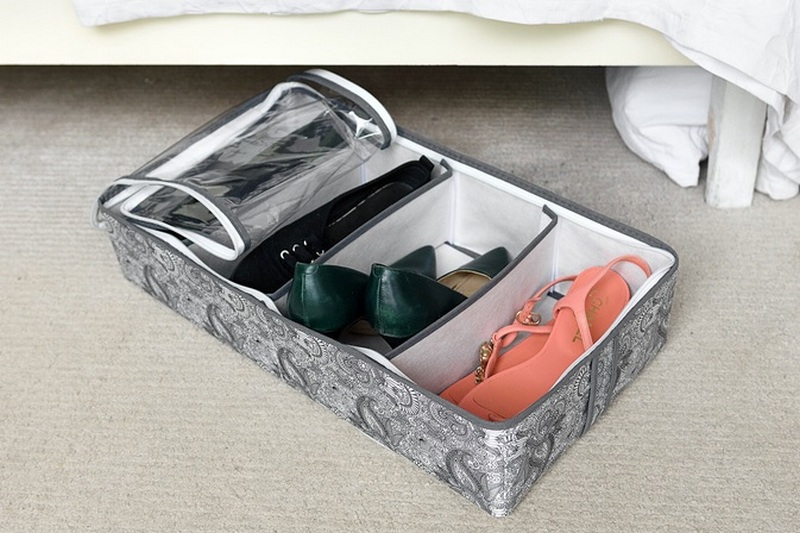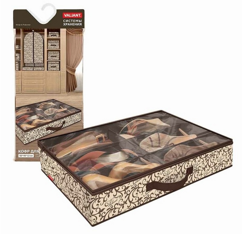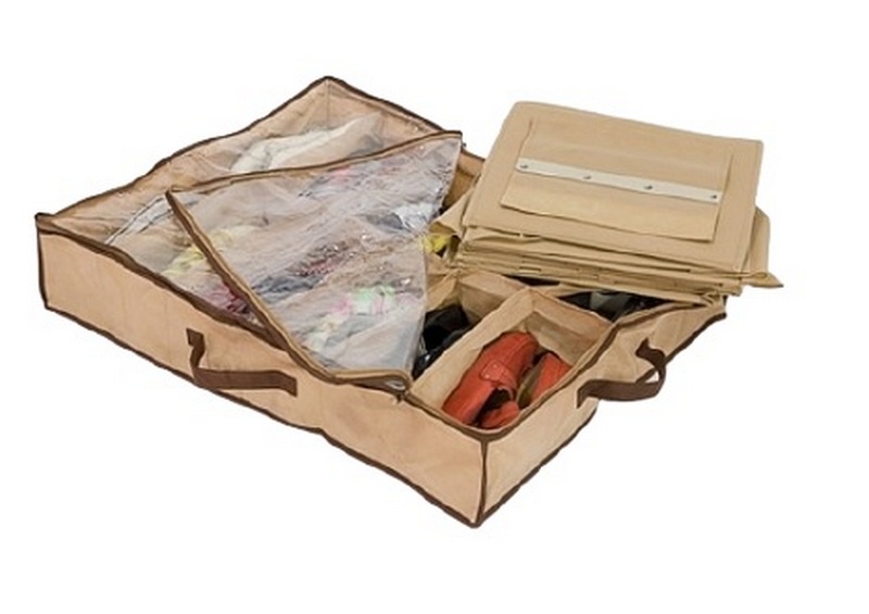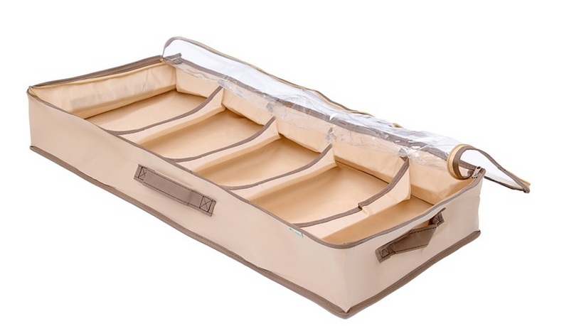یہ آرام دہ آرگنائزر پائیدار اطراف رکھتا ہے، ایک خوشگوار جمالیاتی ڈیزائن میں بنایا گیا ہے، اس میں تقریبا کسی بھی جوتے کو ذخیرہ کرنے کے لئے آسان ہے. تیاری کا مواد اسپینڈ بانڈ ہے، اور اس نمونے کے نچلے حصے کو قابل اعتماد گتے سے بنی پلیٹ سے مضبوط کیا گیا ہے۔ بستر کے نیچے یا صوفے کے طاق میں جگہ کے لیے موزوں ہے۔ خوردہ زنجیروں کے لئے تجویز کردہ قیمت 1200 روبل ہے۔