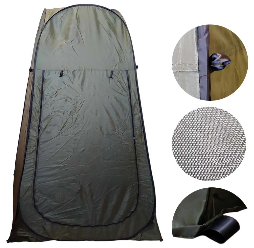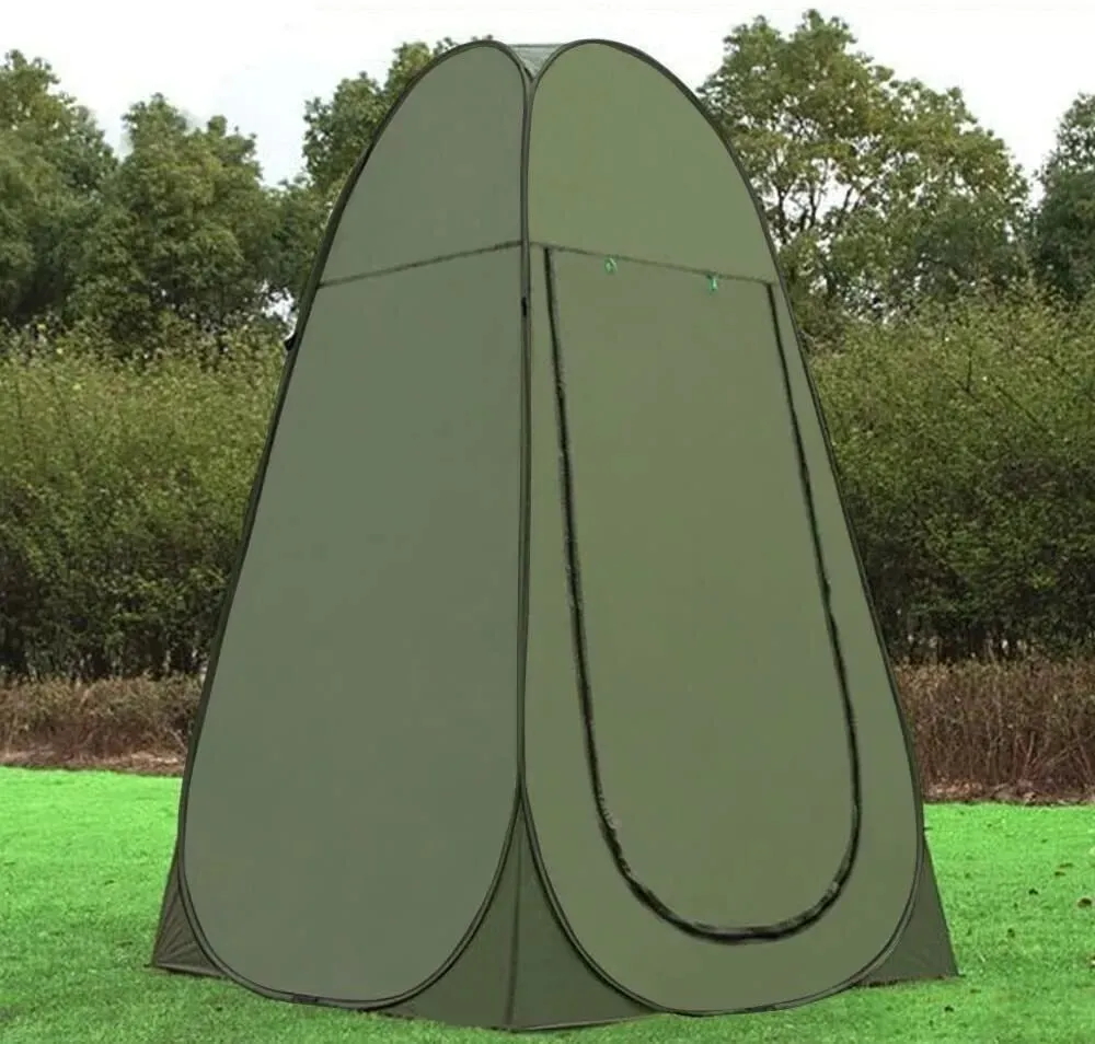 شاور ٹوائلٹ ٹینٹ نصف کرہ کی شکل میں ایک عام واحد پرت والا خیمہ ہے۔ یہ جمع کرنا آسان ہے اور زیادہ وقت نہیں لگتا ہے۔