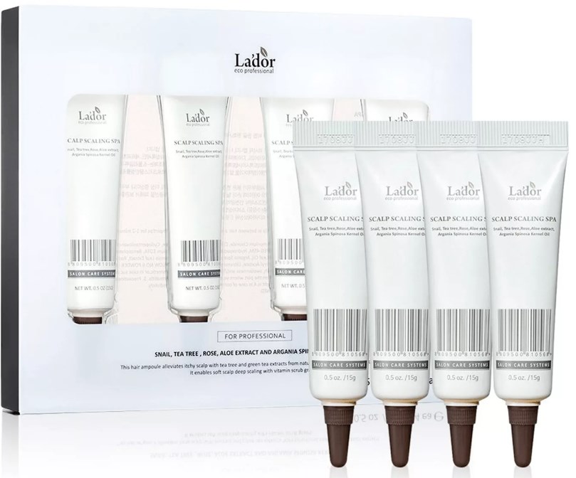 Scalp Scaling Spa کورین کمپنی La'dor کا ایک تیزاب چھیلنے والا سیرم ہے۔ مینوفیکچرر کے مطابق، ان کی مصنوعات کھوپڑی کو قدرتی اور کاسمیٹک نجاستوں سے گہرائی سے صاف کرتی ہے، خشکی سے لڑنے میں مدد کرتی ہے، سیبم کی پیداوار میں اضافہ کرتی ہے۔ مینتھول، چائے کے عرق، گلاب، ایلو، آرگن آئل، گھونگھے کے عرق کا مرکب میں شامل ٹھنڈک اور سکون بخش اثر ہوتا ہے، بالوں کے پتیوں کی پرورش کرتا ہے، بالوں کی ساخت کو مضبوط کرتا ہے۔ ایک ہلکی کریمی ساخت ہے. استعمال میں آسانی کے لیے، سیرم کو ایک نرم پلاسٹک ٹیوب میں ایک ایپلی کیٹر ٹونٹی کے ساتھ پیک کیا جاتا ہے۔ ایپلی کیشن کی خصوصیات میں سے، یہ حقیقت کو اجاگر کرنے کے قابل ہے کہ یہ چھیلنا، زیادہ تر کے برعکس، پہلے سے دھوئے ہوئے سر پر لگایا جاتا ہے۔