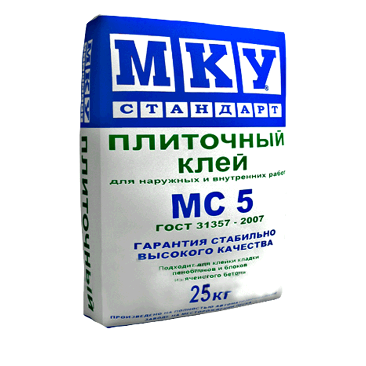 چھٹے نمبر پر MKU MS-5 ٹائل چپکنے والی ہے، جو بڑے پیمانے پر سیرامک ٹائلوں اور گرینائٹ، ٹائلوں کے ساتھ اندرونی اور بیرونی کلیڈنگ کی تیاری کے لیے استعمال ہوتی ہے۔ اس کی کیمیائی ساخت اور جسمانی خصوصیات کی وجہ سے، اسے زیادہ نمی والے کمروں میں استعمال کیا جا سکتا ہے۔ چپکنے والا حل کافی حد تک پلاسٹک کا ہے، جو آپ کو 10 منٹ کے اندر ٹائل کی پوزیشن کو درست اور برابر کرنے کی اجازت دیتا ہے۔ خشک مرکب MKU MS-5 روسی معیاری GOST 31357-2007 کی رہنمائی میں تیار کیا گیا تھا، جو ہمیں ٹائل چپکنے والی کے معیار اور وشوسنییتا کی تصدیق کرنے کی اجازت دیتا ہے۔