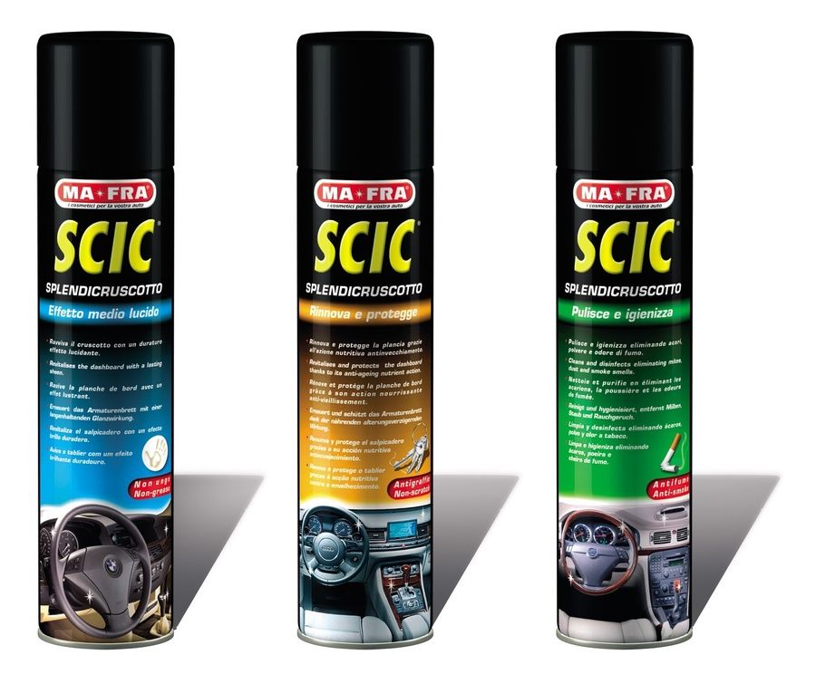 اطالوی حفاظتی ایجنٹ MA-FRA SCIC نے پہلا مقام حاصل کیا۔ یہ آلہ مختلف صلاحیتوں کے ایک ایروسول کین میں بند ہے۔ اس قسم کی پیکیجنگ کے ساتھ، اسفنج پر پالش لگانا اور اسے رگڑنا زیادہ آسان ہے۔ MA-FRA SCIC BLUE SPRAY اور MA-FRA SCIC ORANGE پالش پلاسٹک کی سطحوں کے لیے موزوں ہیں۔ اس میں ایسے مادے ہوتے ہیں جو کیڑوں کو تباہ کرتے ہیں۔ اینٹی سٹیٹک خصوصیات دھول پیدا کیے بغیر علاج شدہ سطح کو طویل عرصے تک صاف رکھنے میں مدد کرتی ہیں۔ پروڈکٹ کا فارمولا صاف کرتا ہے، جراثیم کش کرتا ہے، سطح کے رنگ اور ظاہری شکل کو بحال کرتا ہے، عمر بڑھنے سے بچاتا ہے اور ایک ہی وقت میں چھوٹے خروںچوں کی تشکیل کو روکتا ہے۔ ڈیش بورڈ اور دیگر آٹو انٹیریئر کے لیے موزوں ہے۔ SCIC اورنج - چمکدار، اسے مختلف شیڈز، گہرے اور ہلکے پینلز پر استعمال کیا جا سکتا ہے۔