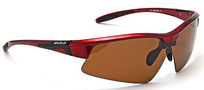 وہ نیم رم والے فریموں اور بھورے لینز سے ممتاز ہیں۔ فریموں کو سرخ رنگ میں سیاہ داخلوں کے ساتھ نمایاں کیا گیا ہے، اطراف کے اوپری حصے پر سفید لوگو کے حروف۔ نرم سلیکون ناک پیڈ ہیں.