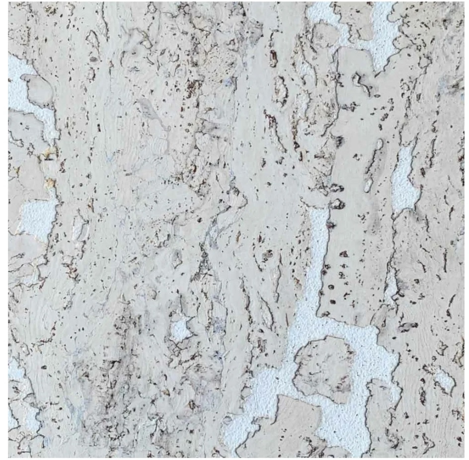 کارک وال پیپر کا ایک سجیلا ماڈل تین تہوں پر مشتمل ہوتا ہے: نیچے والی تہہ ایگلومیریٹ کارک سے بنی ہوتی ہے، درمیانی حصہ کارک وینیر کو پھیلاتا ہے اور پروڈکٹ کے اوپر موم کی حفاظتی تہہ لگائی جاتی ہے۔