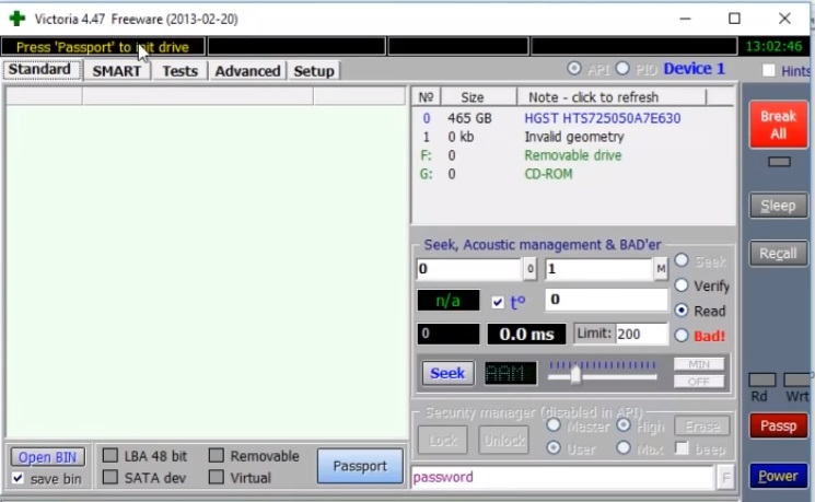 یہ کم کارکردگی کے ساتھ ہارڈ ڈرائیوز کے ساتھ کام کرنے کے لیے مقبول پروگراموں میں سے ایک ہے۔ یہ سائز میں چھوٹا ہے، لیکن بڑی طاقت رکھتا ہے۔ اس کی مدد سے، آپ نہ صرف ڈرائیو کی جانچ کر سکتے ہیں، بلکہ سمارٹ اوصاف کا انتظام بھی کر سکتے ہیں، سیکٹرز کو پڑھ سکتے ہیں، پاس ورڈ سسٹم کا نظم کر سکتے ہیں اور HDD کا سائز تبدیل کر سکتے ہیں۔