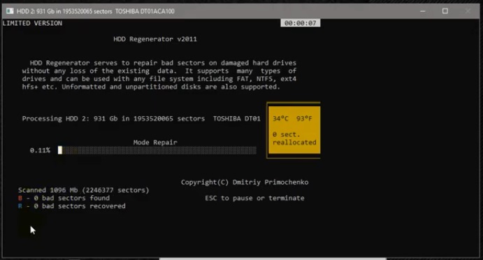 ایچ ڈی ڈی ری جنریٹر غلطیوں اور خراب شعبوں کے لیے ہارڈ ڈرائیوز کا فوری اسکین کرتا ہے۔ اس کا استعمال ڈرائیو کو ہونے والے جسمانی نقصان کا پتہ لگانے کے لیے کیا جا سکتا ہے۔ اسکیننگ جسمانی سطح پر ہوتی ہے، لہذا یہ آپ کو کسی بھی فائل سسٹم کے ساتھ کام کرنے کی اجازت دیتا ہے۔ تفصیلی اسکین کے نتائج ایک ڈائیلاگ باکس میں دکھائے جاتے ہیں۔ کچھ صورتوں میں، HDD Regenerator خراب سیکٹرز کی مرمت کرے گا اور ان کی موجودگی کا مسئلہ حل کرے گا۔ اگر یہ ممکن نہیں ہے تو، یہ ہارڈ ڈرائیو کو تبدیل کرنے سے پہلے تمام دستیاب معلومات کو نکال سکتا ہے۔