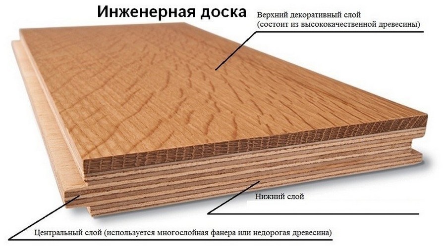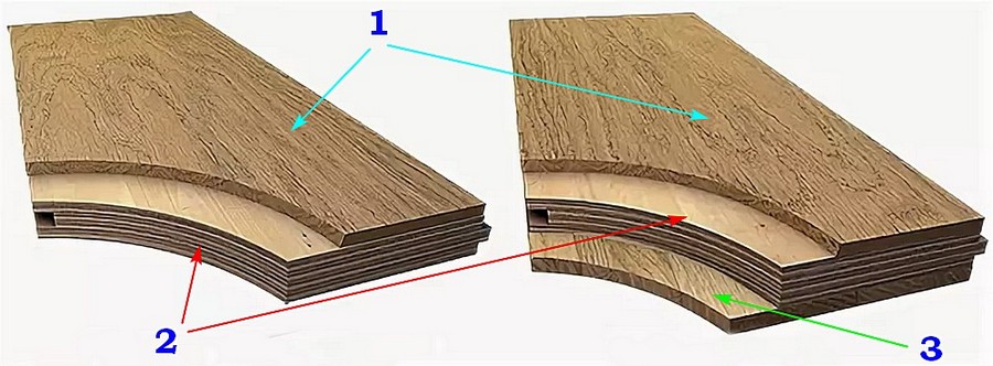 تہوں کی تعداد کے مطابق، بورڈ دو یا تین پرت ہو سکتا ہے. پہلی پرت ہمیشہ قیمتی لکڑی کی ہوتی ہے، اور اگلی ایک سستی لکڑی یا پلائیووڈ ہوتی ہے، جو اوپر کی تہہ کے ریشوں کے ساتھ کھڑی ہوتی ہے۔ اس صورت میں جب ڈھانچے میں ایک تیسری پرت ہوتی ہے، یہ وینر ریشوں کے متوازی رکھی جاتی ہے۔