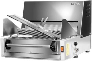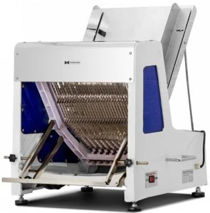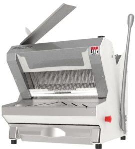 ڈیسک ٹاپ بریڈ سلائسر بیکری کی مصنوعات کو بڑی مقدار میں کاٹنے کے لیے استعمال کیا جاتا ہے۔ باڈی، سیفٹی شٹر اور درانتی کے سائز کا بلیڈ اعلیٰ معیار کے سٹینلیس سٹیل سے بنا ہے۔ کٹوتیوں کی تعداد 100 سے 300 رولز فی گھنٹہ ہے۔ ٹکڑوں کی موٹائی 5 سے 23 ملی میٹر تک ایڈجسٹ کی جا سکتی ہے۔ تازہ پکی ہوئی روٹی کے ٹکڑے کرنے کے لیے موزوں ہے۔