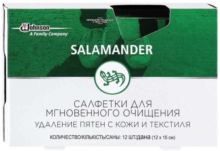 کمپنی روسی مارکیٹ میں ایک اہم مقام رکھتی ہے، جوتوں کی صفائی، دیکھ بھال اور پرکشش شکل کی دیکھ بھال کے لیے مصنوعات کی ایک وسیع رینج پیش کرتی ہے۔ صفائی کے نازک فنکشن والے وائپس کو چمڑے اور چمڑے سے بنی کسی بھی سطح پر استعمال کیا جا سکتا ہے۔ لاگت: 206 روبل۔