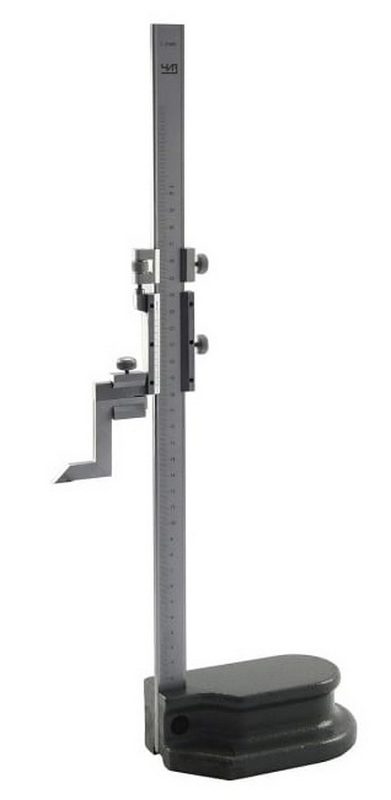 زیر نظر آلے میں، مرکزی پیمائش کے پیمانے کے ساتھ چھڑی کو، جیسا کہ یہ تھا، آلے کی بنیاد میں سختی سے 90 ڈگری کے زاویے پر اس کے سپورٹ کے ہوائی جہاز پر "دبا" جاتا ہے۔ بار پر ہی ایک مائیکرو میٹر اسکیل کے ساتھ ایک حرکت پذیر فریم ہے جو سائیڈ تک پھیلا ہوا ہے۔ پھیلاؤ ایک سکرو کے ساتھ ایک تالے سے لیس ہے، جس پر نشان لگانا / ماپنے والی ٹانگ مقرر ہے (جس کا انحصار اس کام پر ہوگا - نشان لگانا یا ماپنا)۔