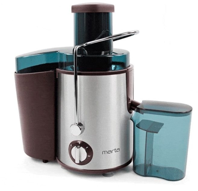 بجٹ کی قیمت کے حصے کا آلہ بہت سے لوگوں کے لیے دستیاب ہے۔ اس کی کم بجلی کی کھپت ہے - 200 واٹ۔ وزن 3.5 کلوگرام ہے۔ ڈراپ اسٹاپ سسٹم اور خودکار گودا انجیکشن فنکشن سے لیس ہے۔ نقصانات میں کیک کے لئے ایک تنگ نالی شامل ہے، جس میں یہ پھنس سکتا ہے۔ گھماؤ کے فوراً بعد یونٹ کو دھونا ضروری ہے۔